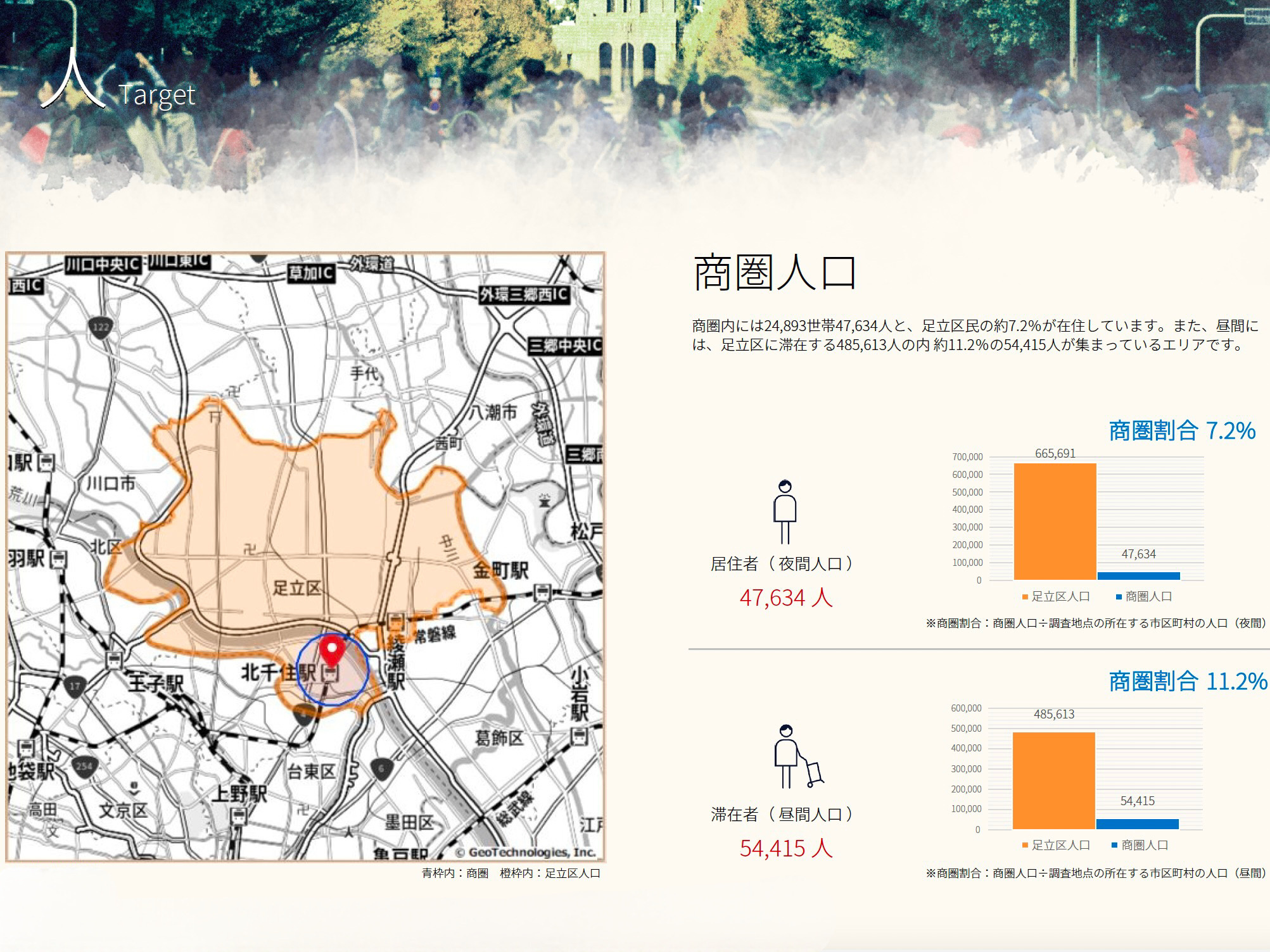 他に『千住ほんちょう通り』や『宿場町通り』も人通りが多く、集客しやすい通りとなっています。
