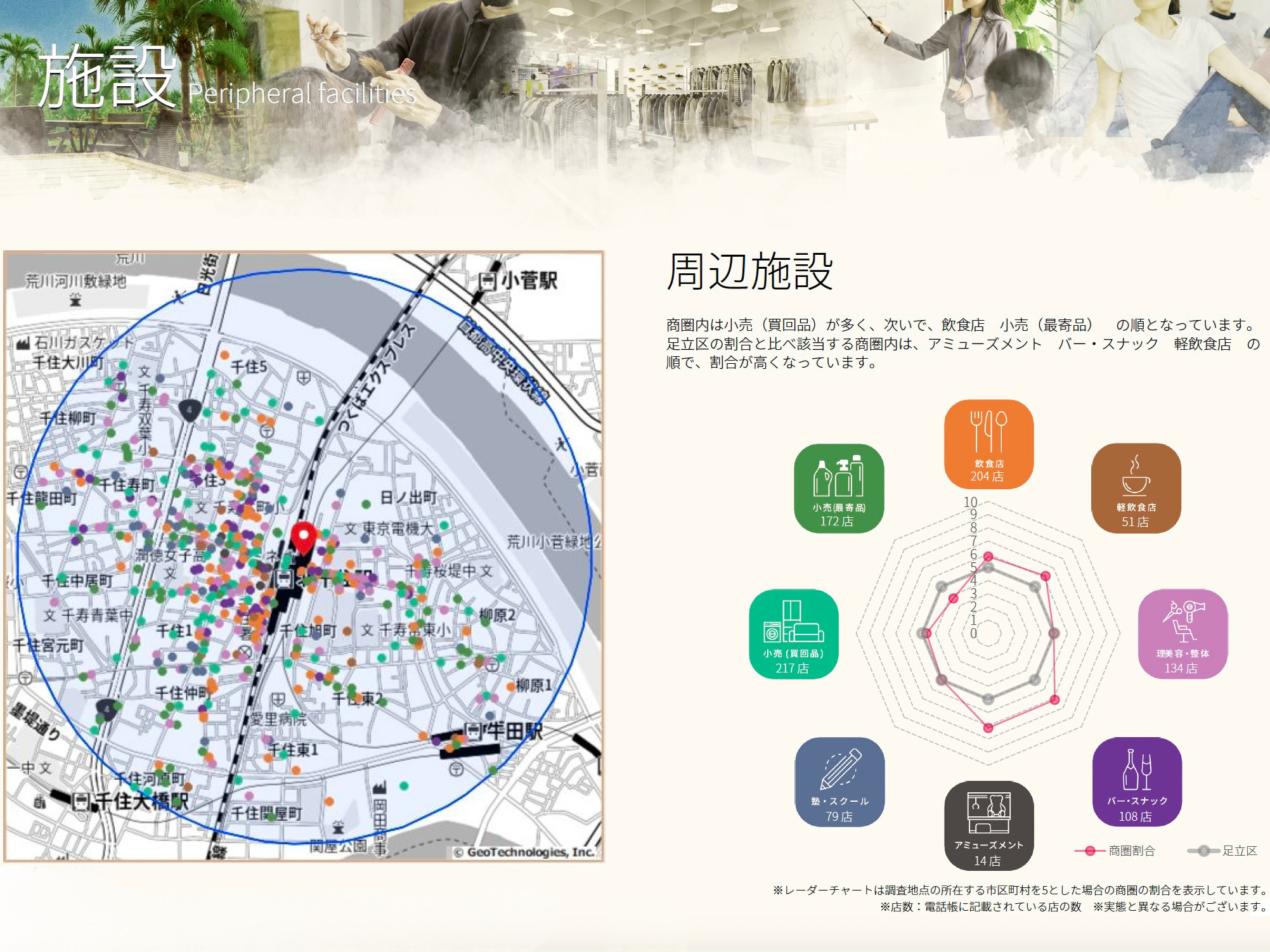 東口は西口に比べて商業性は劣りますが、『東京電気大学』や『足立学園』があり、学生向けビジネスが展開しやすい立地です。