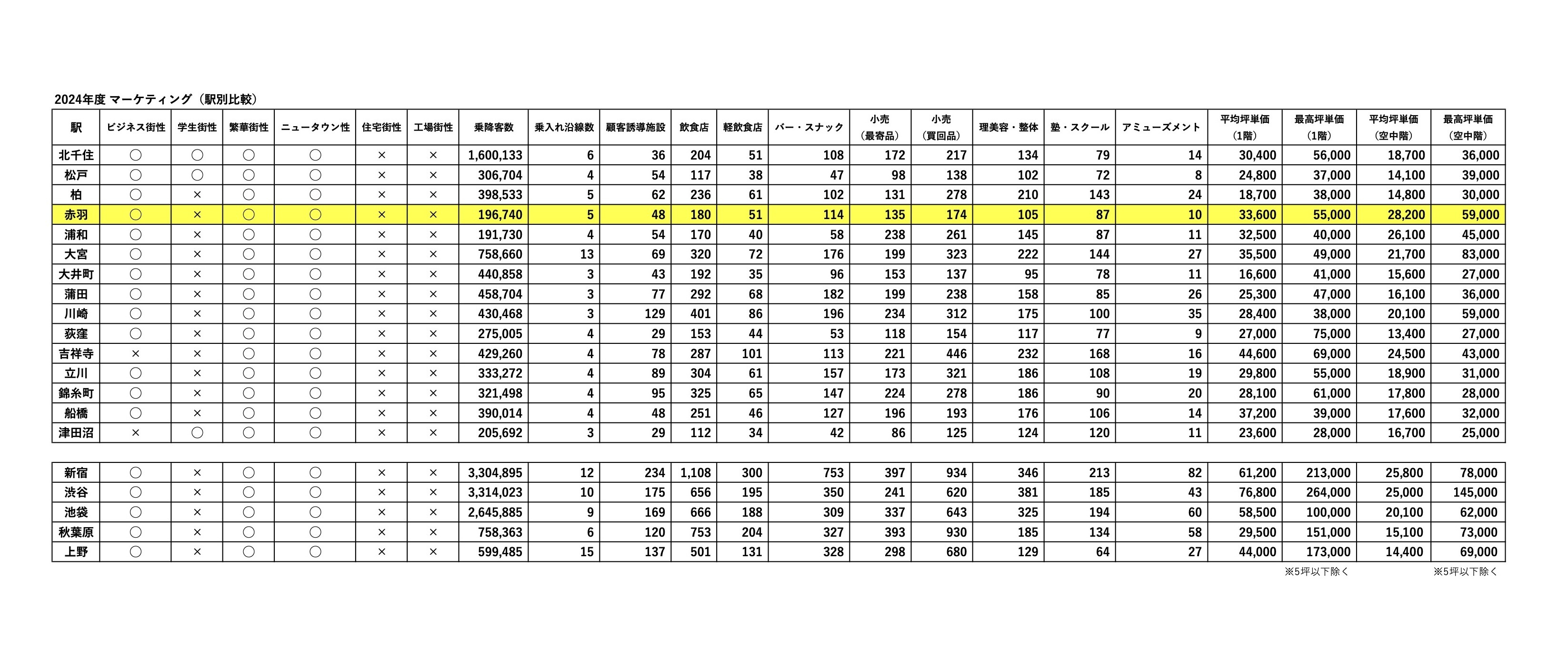 赤羽駅の物件をご提案する際に使用している参考値の一部を公開します。