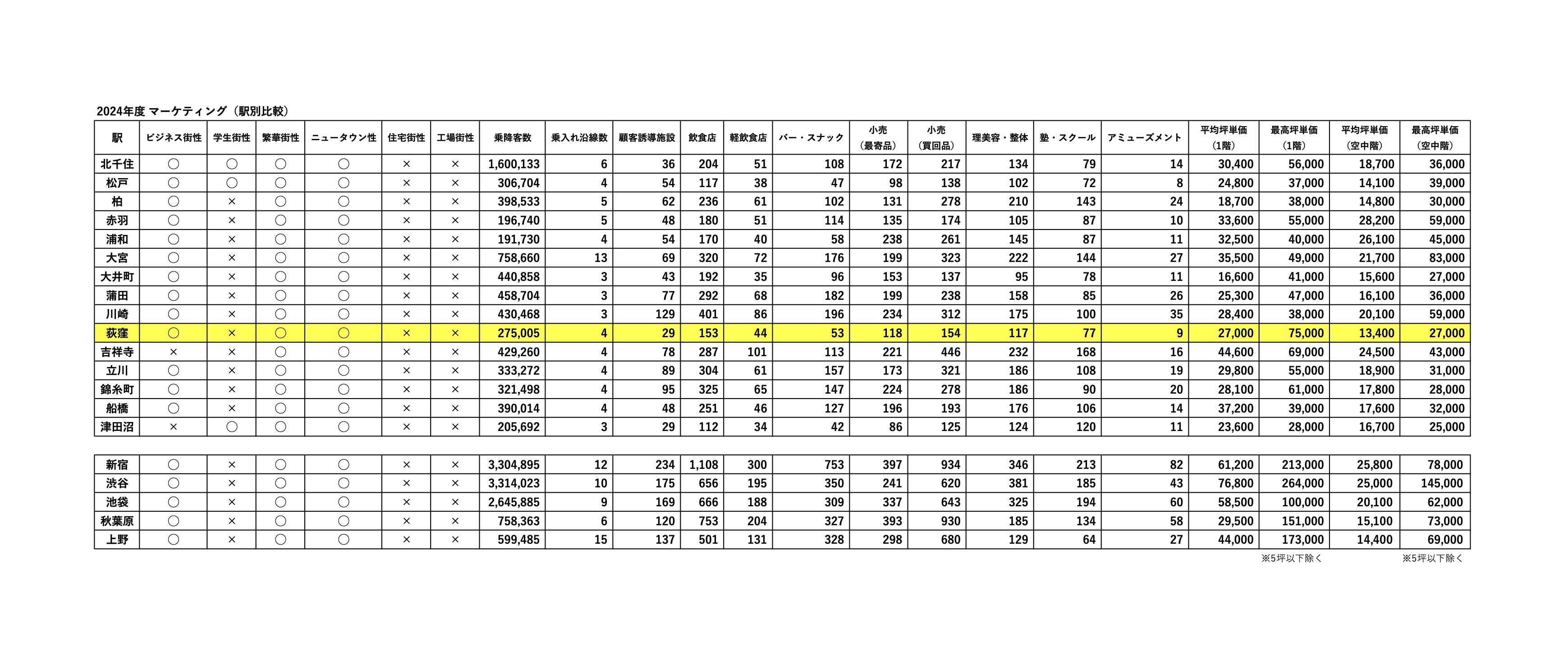 荻窪駅の物件をご提案する際に使用している参考値の一部を公開します。