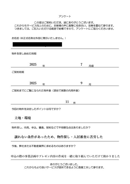 - 今後、弊社または不動産業界に求めるものはありますか?